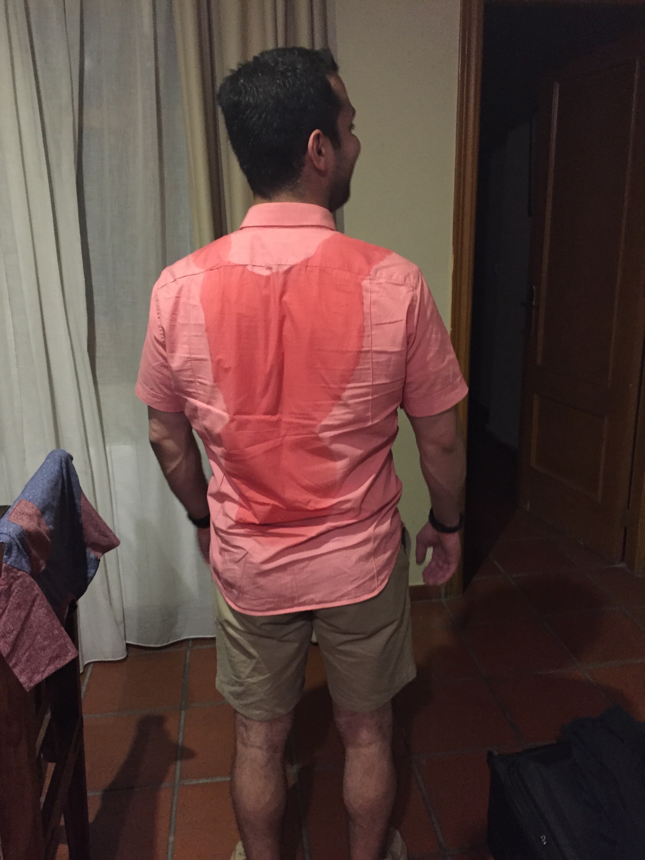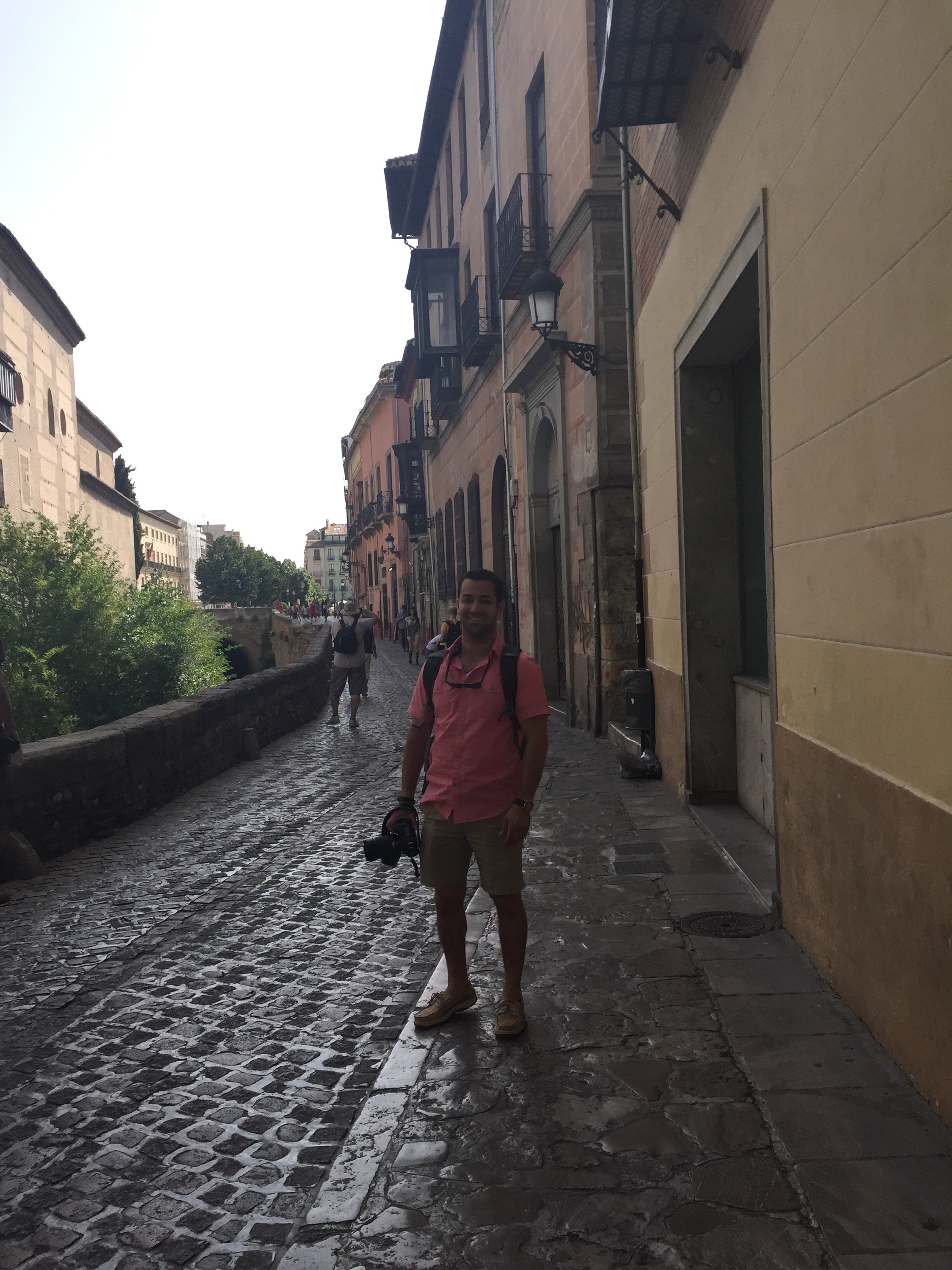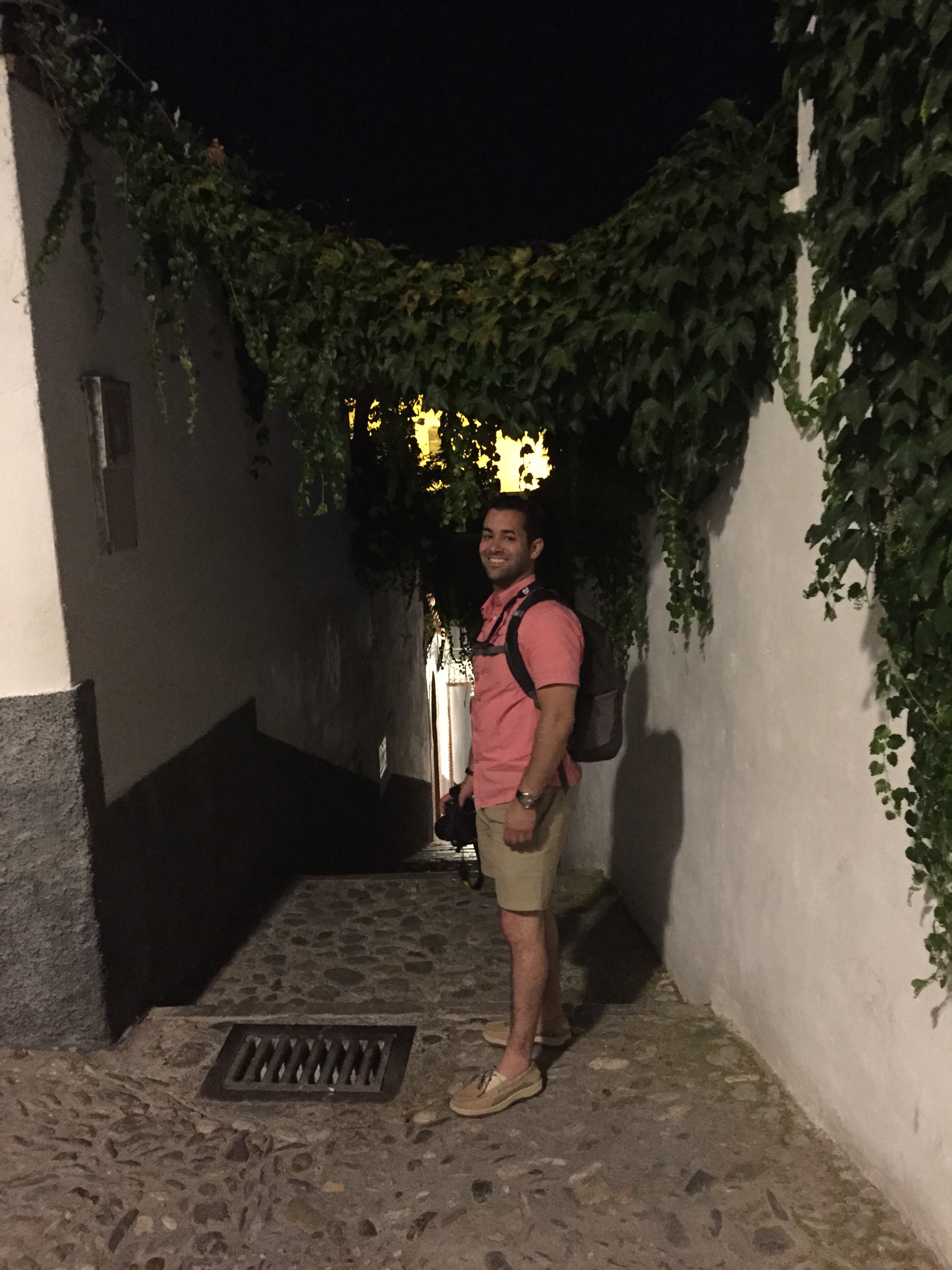 Greg and I learned from the beautiful girl at reception that the best place to take in the unique beauty of The Alhambra and the city was this lookout point called Mirador San Nicolas. Needing to walk off our tapas, we began the ascension up to San Nicolas, which took us through zig zagging stone streets sandwiched between white walls of beautifully classic European flats and restaurants. It was a steep climb, but when we made it to the top, it was well worth it. The spot was crowded, filled with kids, families, tourists, locals, street vendors, and musicians. Everyone talking, but not looking at each other, because who could when in front of you is a landscape and structure one could only conjure up in a medieval fantasy. We took countless photos before tromping back down to our hotel. We shared a hearty laugh over Greg’s backpack shaped sweat stain he acquired due to the San Nicolas hike, and then called it another perfect Spanish night.