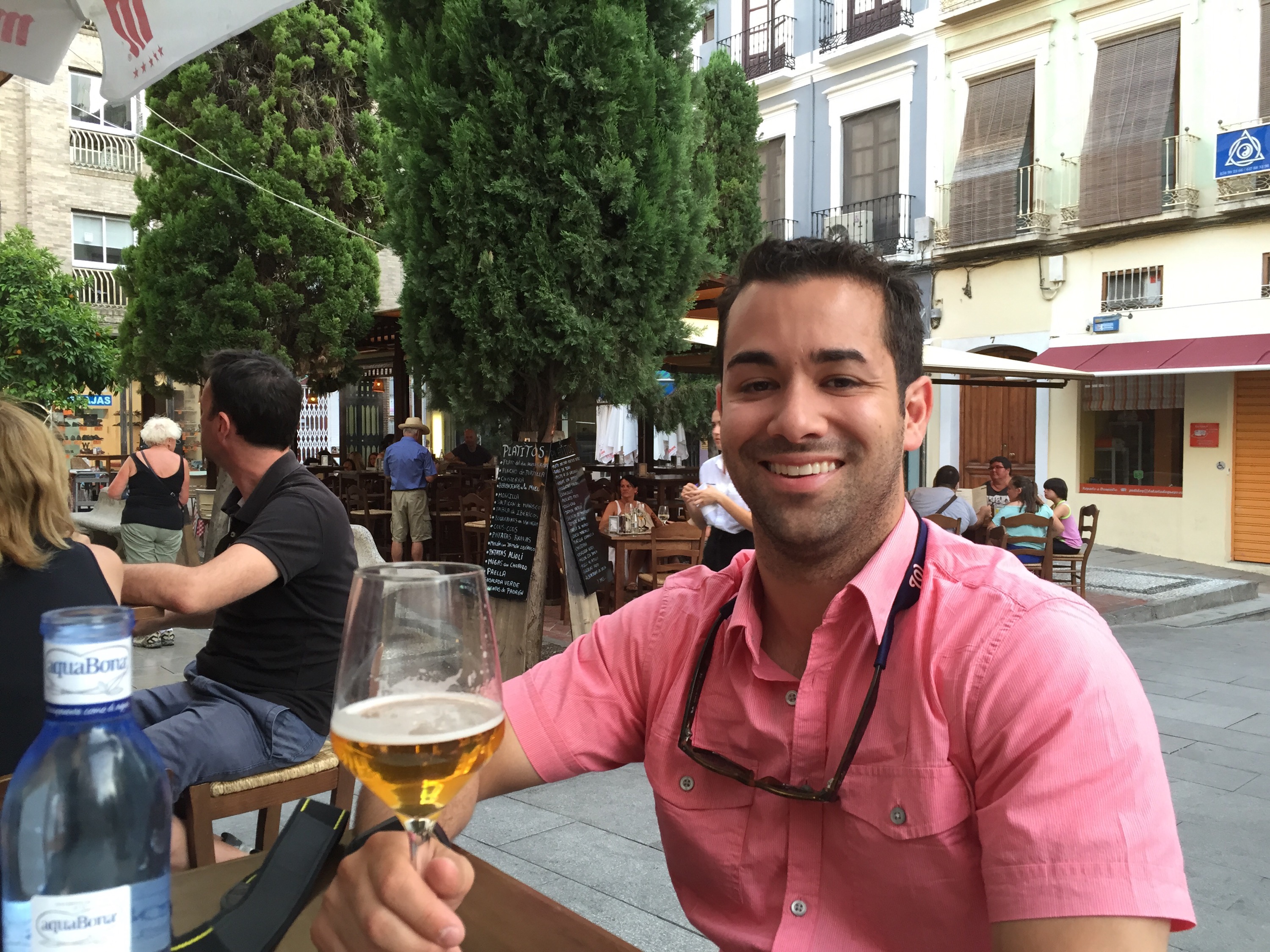 We were hungry and eager to explore this new city that drastically contrasted with our first destination, so we set out on foot in the 100 degree afternoon heat. Fortunately, nearly all the Granada street shops and cafes had misters hanging from their awnings to keep tourists sane and awake. We stopped at the first tapas cafe that seemed somewhat lively. It was siesta time, so the streets were rather quiet, but we did notice an inordinate amount of young people. We figured that there may have been a university nearby. I had read about how in Granada, tapas places loyally believe in providing patrons with a tapas on the house whenever you ordered a drink. There are many stories or explanations for the origin of tapas, but I think the one that makes most sense is that King Alfonso X of Castile was feeling ill and his doctor instructed him to drink some wine and eat small amounts of food with the wine. Once the king heeded the doctor’s advice, his health improved, and he then decreed that all of Spain should consume little bites of food when drinking. He especially wanted this for his soldiers, as they would feel sick from drinking wine without eating, thus impairing their performance on the battlefield. Regardless of the true origin, tapas is one of my favorite aspects of the Spanish culture, and I was excited to indulge in my first tapas gratis!