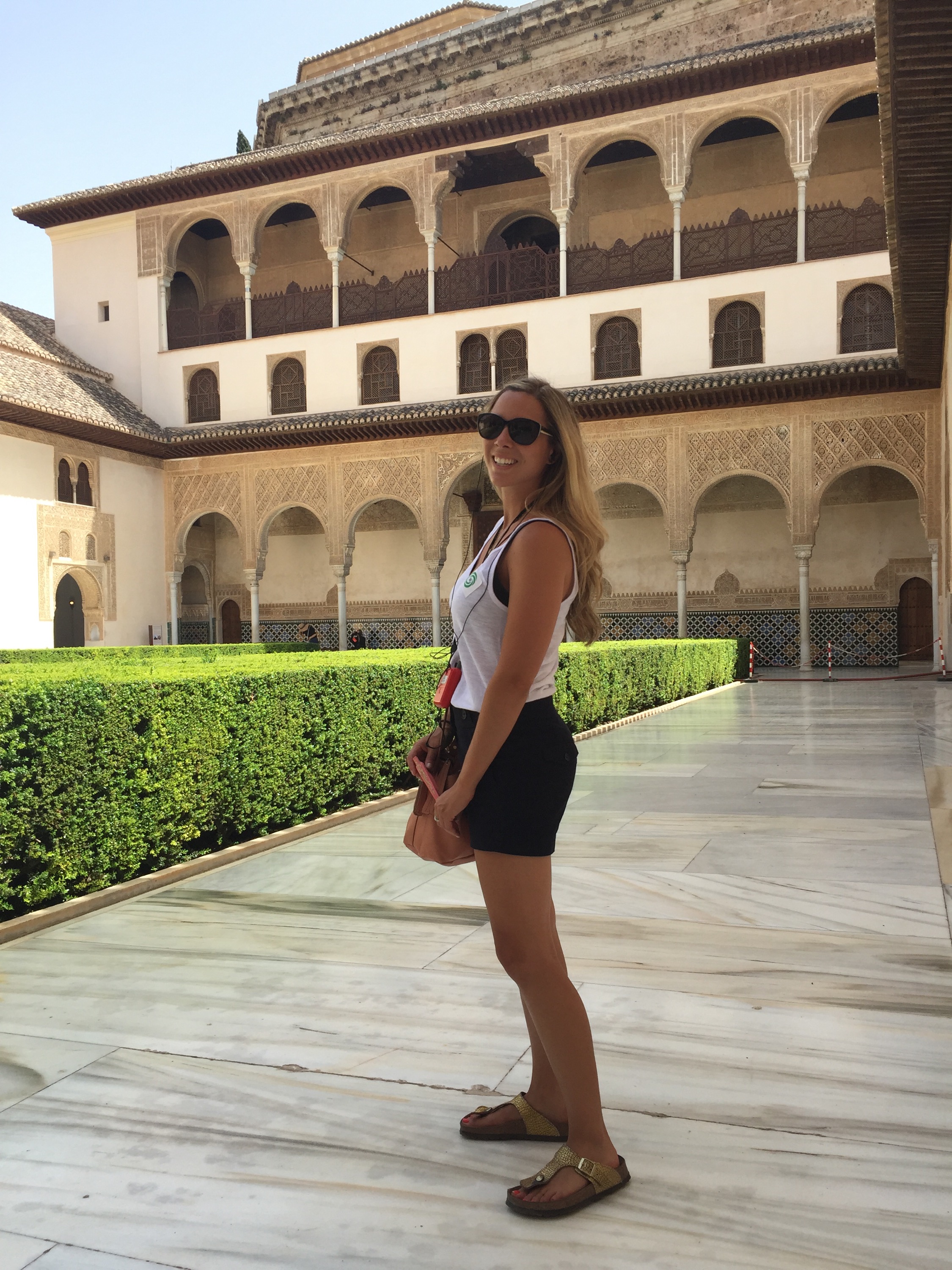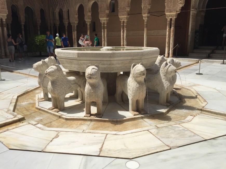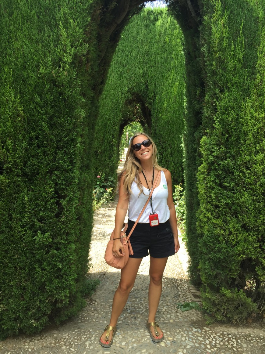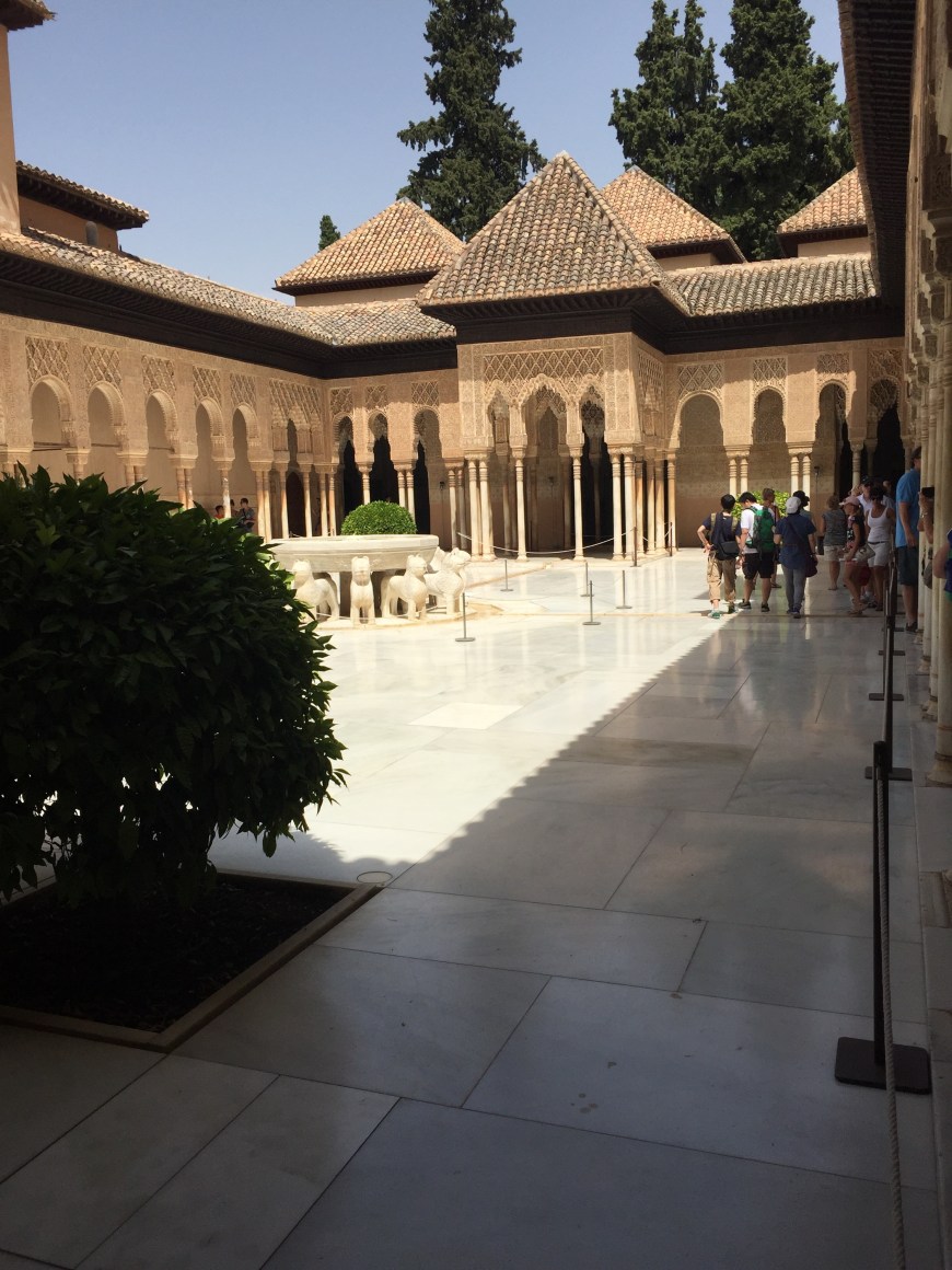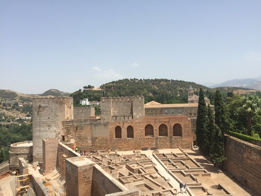 The day was sweltering to say the least, and we were already sweating bullets simply getting to the tour meeting point. I shouldn’t say simply though, because The Alhambra is perched atop a mountain-like hill, so getting to it is a quarter mile calf-burning ascent. As expected, the entrance grounds were swarming with tourists, but we were able to locate our tour group and get equipped with our headsets fairly easily. Though our tour was during the hottest hours of the day, we both thoroughly enjoyed it. I loved learning about this walled in city! One of the coolest parts for me was seeing ruins of the soldiers quarters, because you could see the foundations of their family homes, which truly gave me an image of daily life in a now dormant fortress.