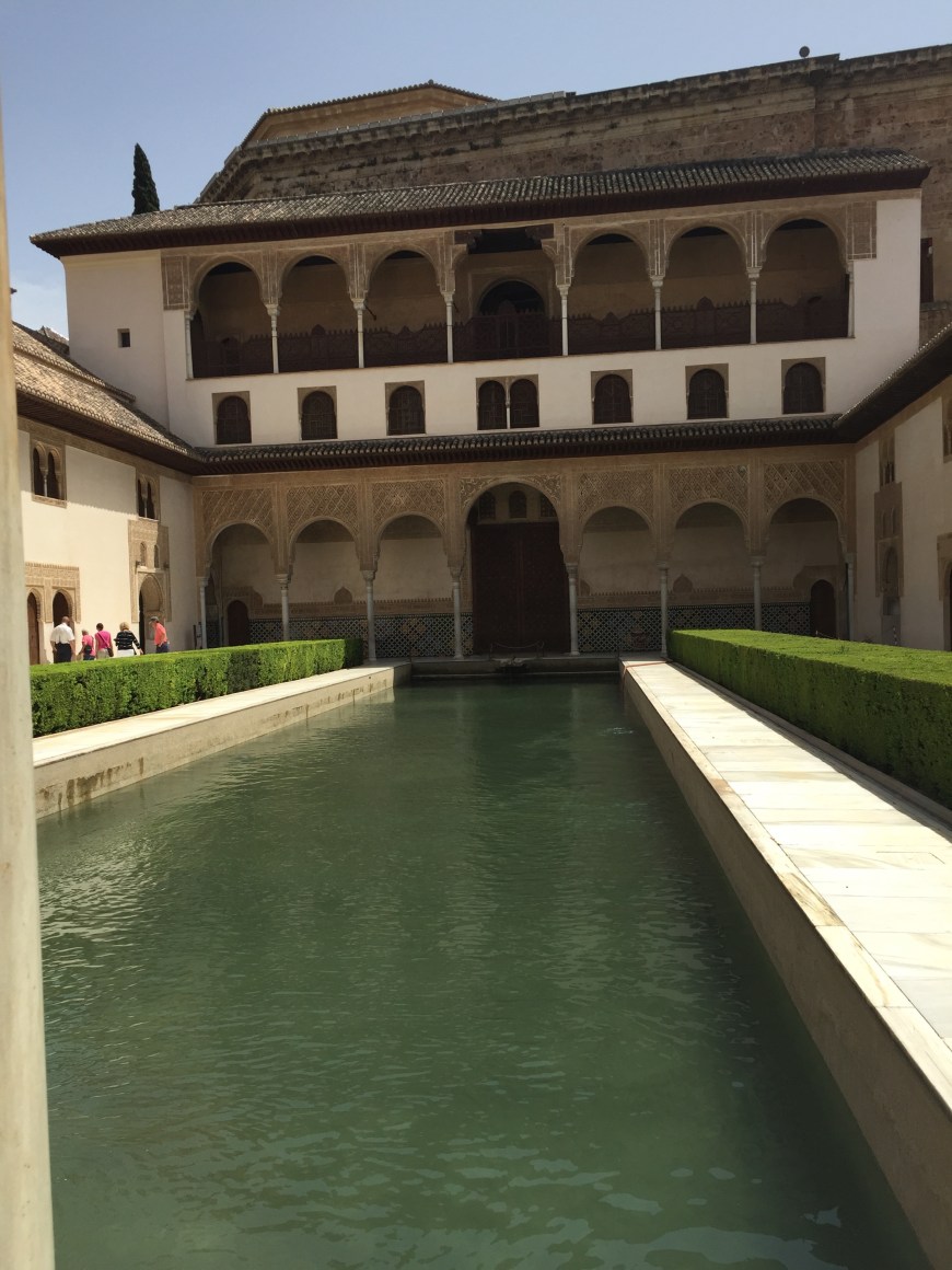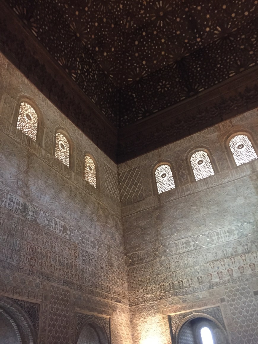 But above all, the most spectacular sites within The Alhambra must be the palaces where sultans once dwelled. When you enter the palaces, it’s hard to not let out some kind of vocal adoration. The walls are chiseled with Arabic words, floor to ceiling. The ceiling of the first palace we entered looked like an arching, tiered honeycomb, and the courtyards are straight out of Disney’s Aladdin. I half expected to see Jasmine petting Raja by the fountain of one of the palace courtyards. Even with all the tourists snapping selfies, the courtyards possessed an ancient, magic, charm that I’ll never forget.