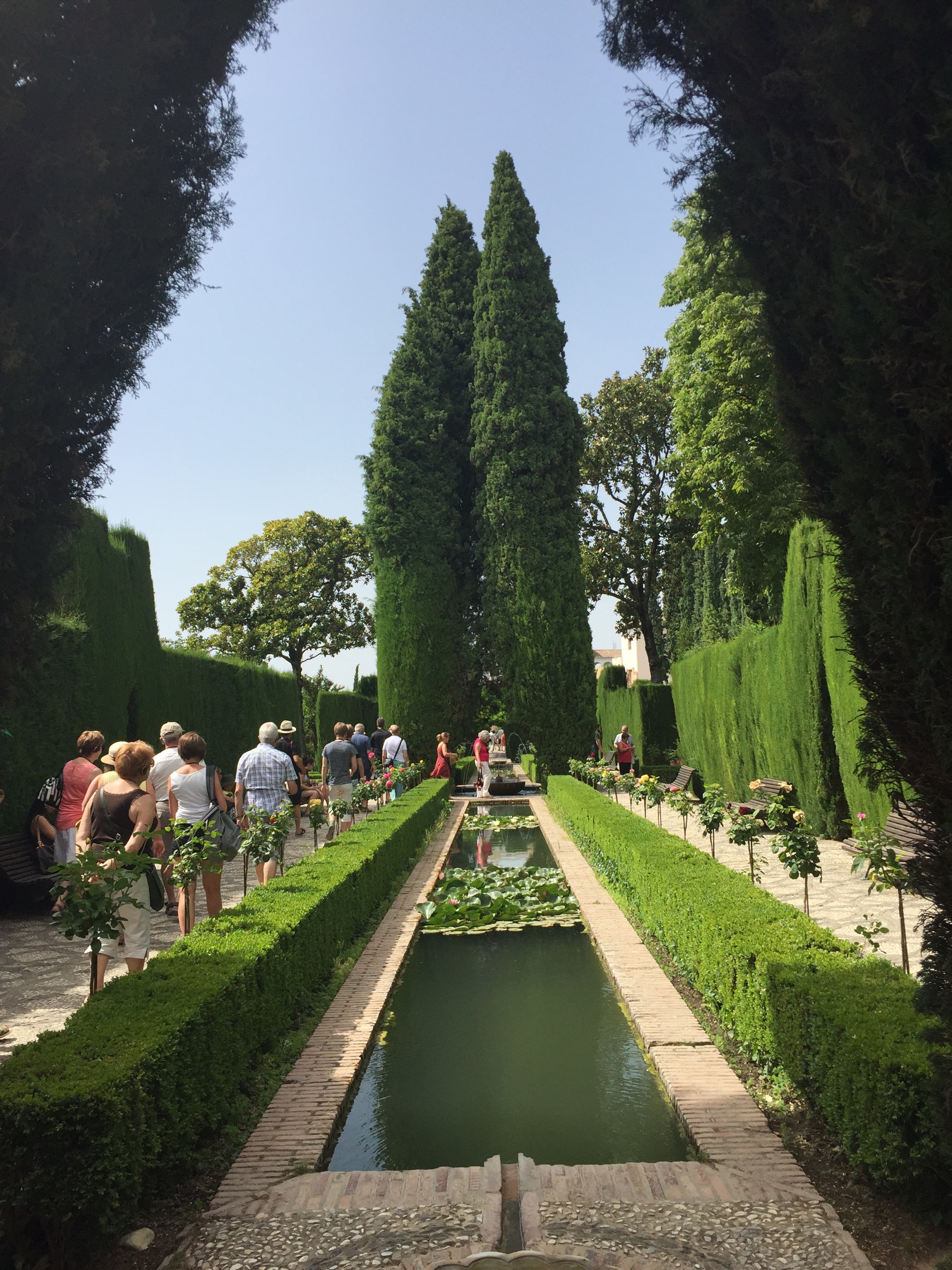 The Alhambra also boasts gorgeous gardens that are lined with shrubs that shape into arches and purple flowers that perfume the air. Beyond the gardens is the Generalife, and no it doesn’t mean general life, this was where all the agriculture was cultivated and harvested. The people of The Alhambra traded with the people of Granada, outside their walls as well. The tour was about 3 and a half hours, which was the perfect length.
