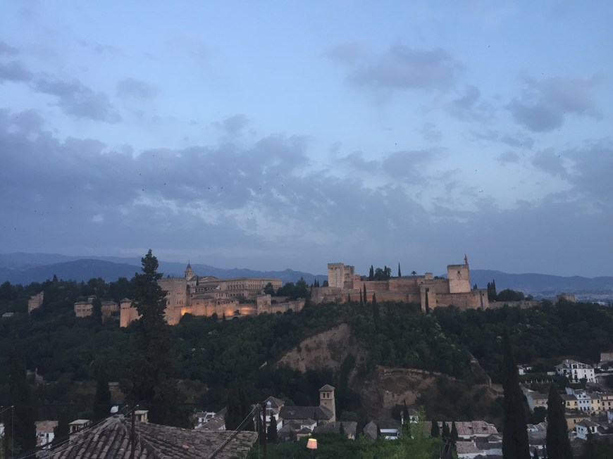 We chose a place called El Agua, and got there around 8:30. We were the only ones there and as soon as we sat down they turned on this romantic music and lit our candle…we both squirmed with humiliation, but quickly allowed the discomfort to evaporate as soon as we tasted the food. Oddly enough, this place was a fondu restaurant. I hadn’t had fondu since I was about 8 or 9, so this was truly a treat! We sat for hours, gazing out at the Alhambra in the setting sun, devouring chunks of bread dipped in gooey, delicious cheese, and sipping vino blanco. After dinner we walked up to the top of Mirador de San Nicolas one final time to say a final goodnight and God bless to the stunning relic atop the Andalusian hilltop.