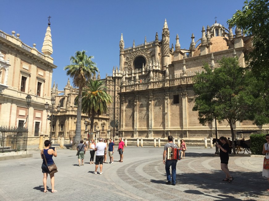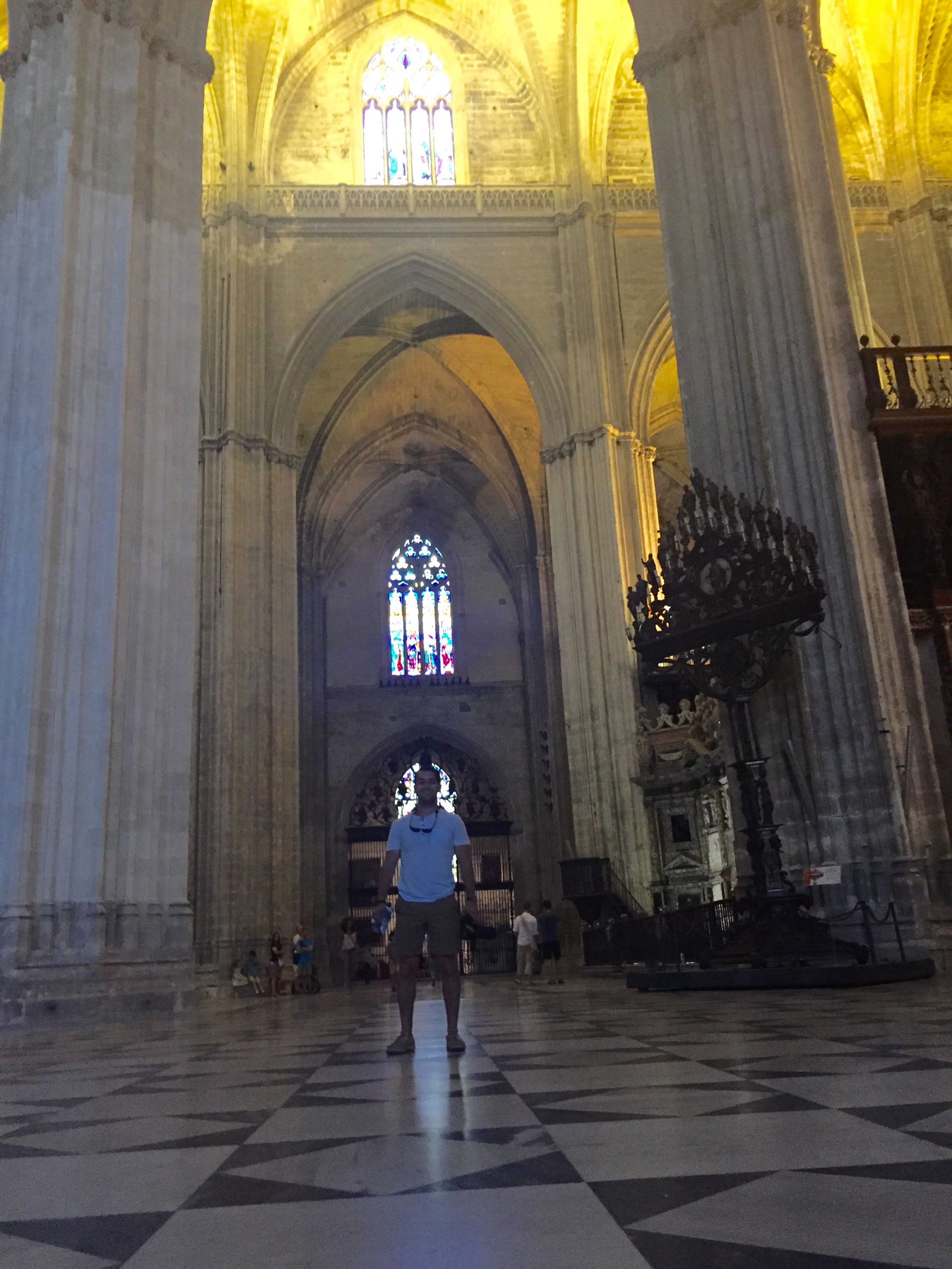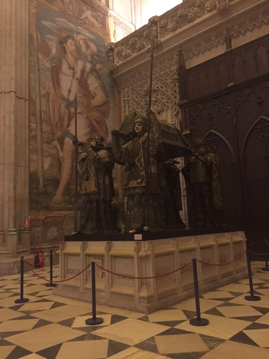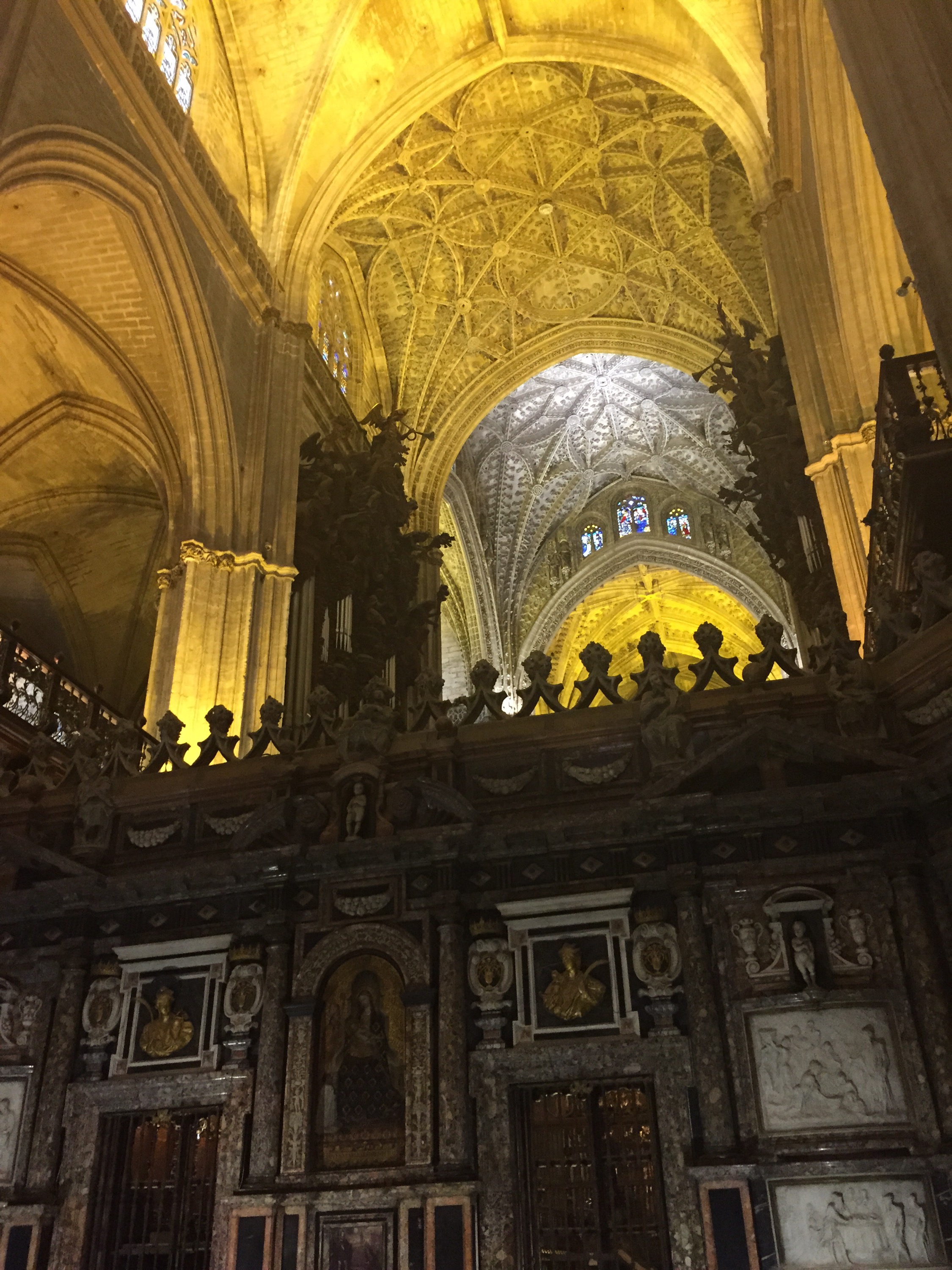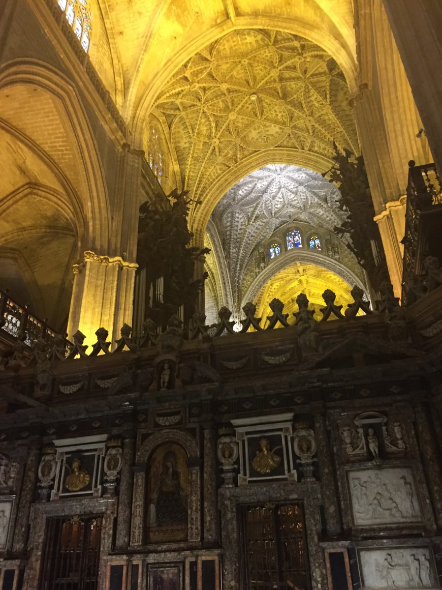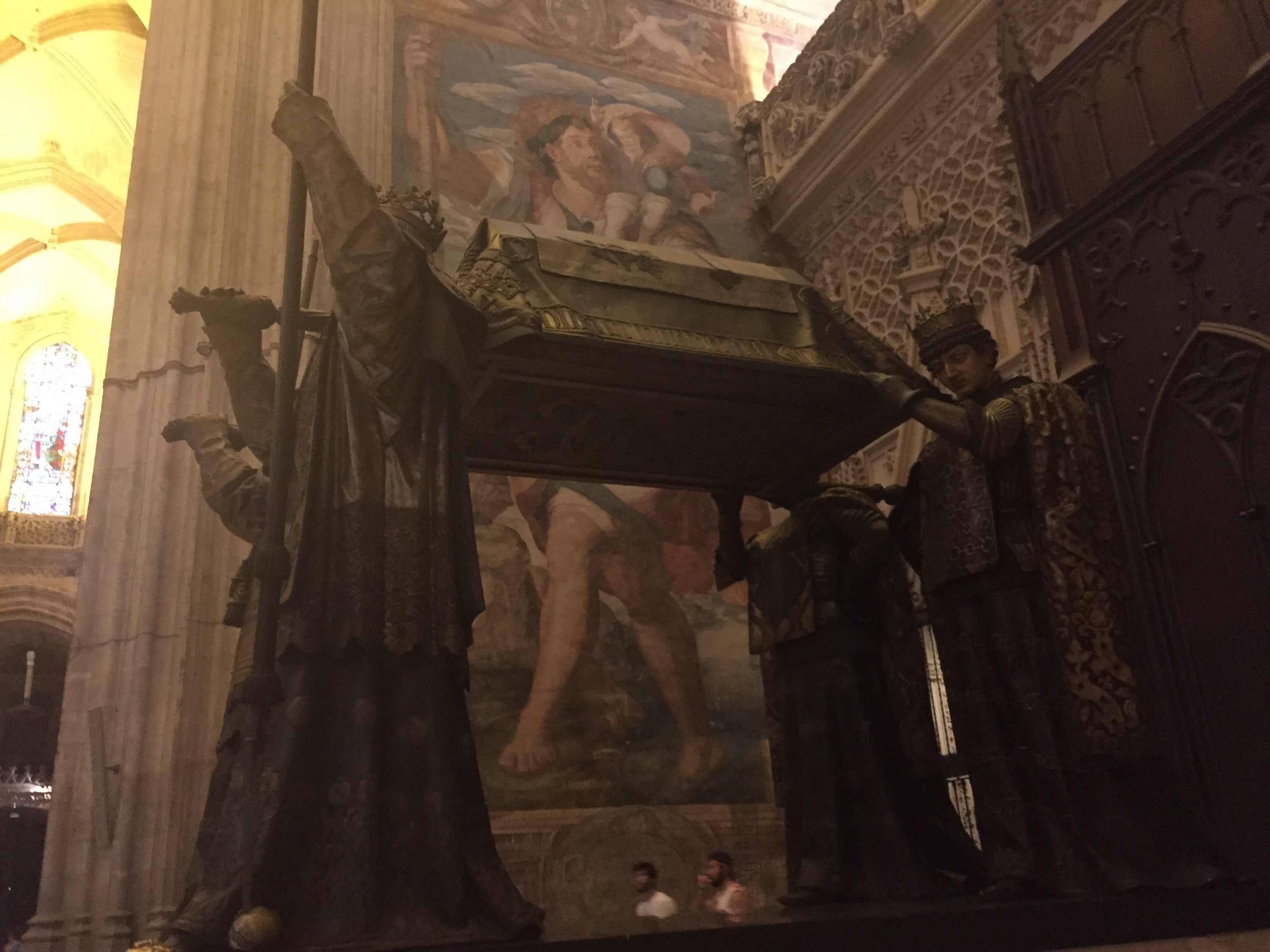 After our Alcazar afternoon, we walked to the Seville Cathedral that allegedly houses Christopher Columbus’s remains in addition to an incredible bell tower called La Giralda. The tower provides able bodied tourists with the best view of the entire city. Though unairconditioned, visiting the cathedral is a must. It’s truly a stunning piece of gothic architecture. Different chapels line the perimeter of the interior, each chapel gate and altar competing with one another for most ornate and gold-encrusted. Regardless of genuine authenticity, the sarcophagus that encases Christopher Columbus’s remains, or at least remain (some say it’s only a body part), is worth viewing. It’s kind of an eerie experience to see this tribute to America’s controversially celebrated discoverer.
