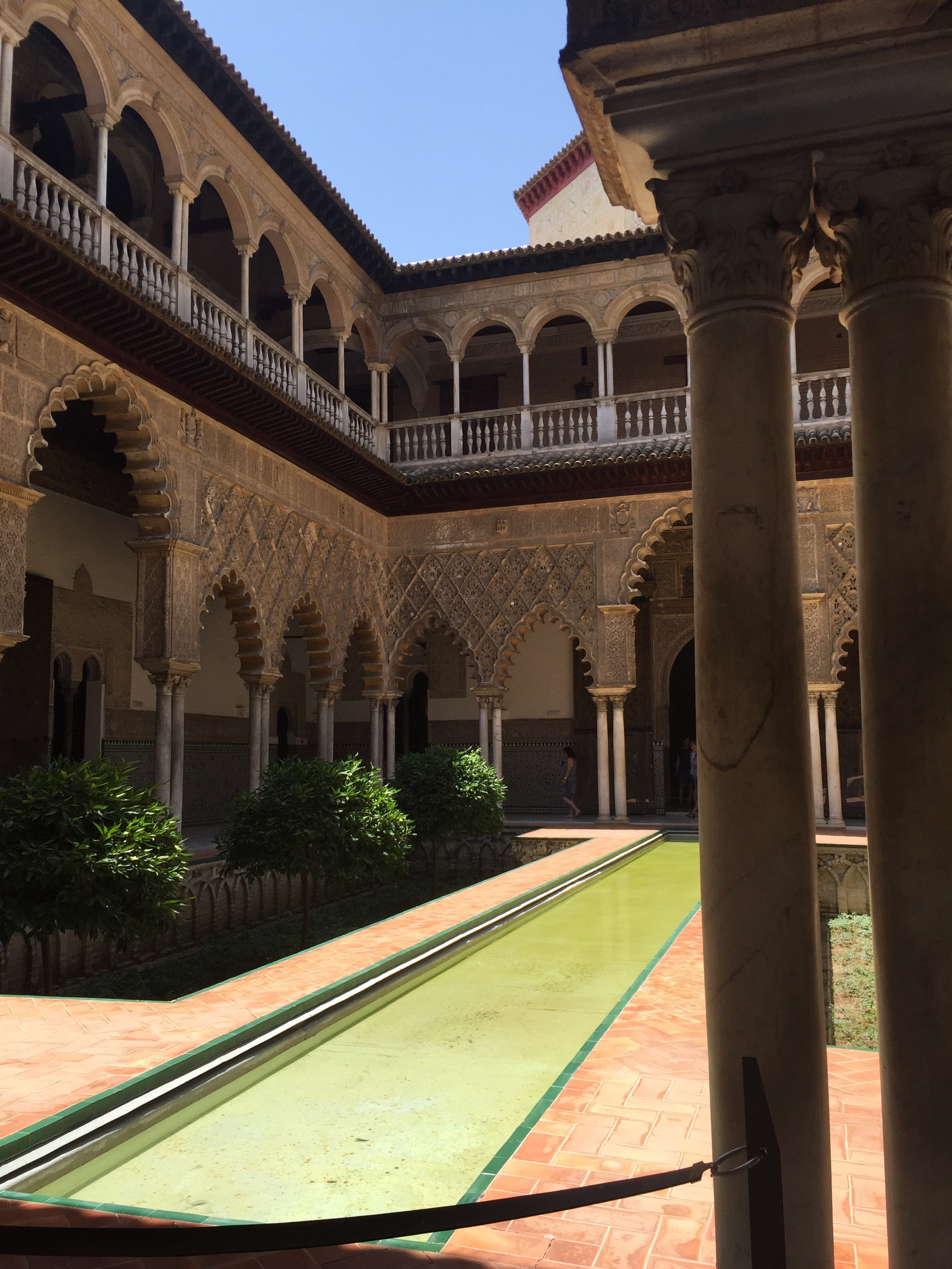 Today was the day I had been eagerly awaiting since October! I remember it was recently after I had decided that a summer-long European adventure was just what the doctor ordered. I was reading an Entertainment Weekly magazine feature article on the filming of this season of Game of Thrones. Being a GOT fanatic, like most inhabitants of planet earth, I’ve dreamed of making pilgrimages to most GOT filming locations at home and abroad, so when I saw that a significant portion of filming took place in Seville, Spain at the mystifyingly beautiful Alcazar, I knew Seville had to be a destination on my tour de Europa. Every Sunday night when having my mind blown and my heart broken by R.R. Martin and HBO, whenever scenes from House Martell in Kingdom of Dorne would grace the screen, I would excitedly remind my viewing companions that I was going there this summer. Greg and I reminded each other via text every episode as well. So as you can now gather, I had created quite the hype around this visit to the “Kingdom of Dorne.” I’ll go ahead now and say that it absolutely did not disappoint and only delivered.