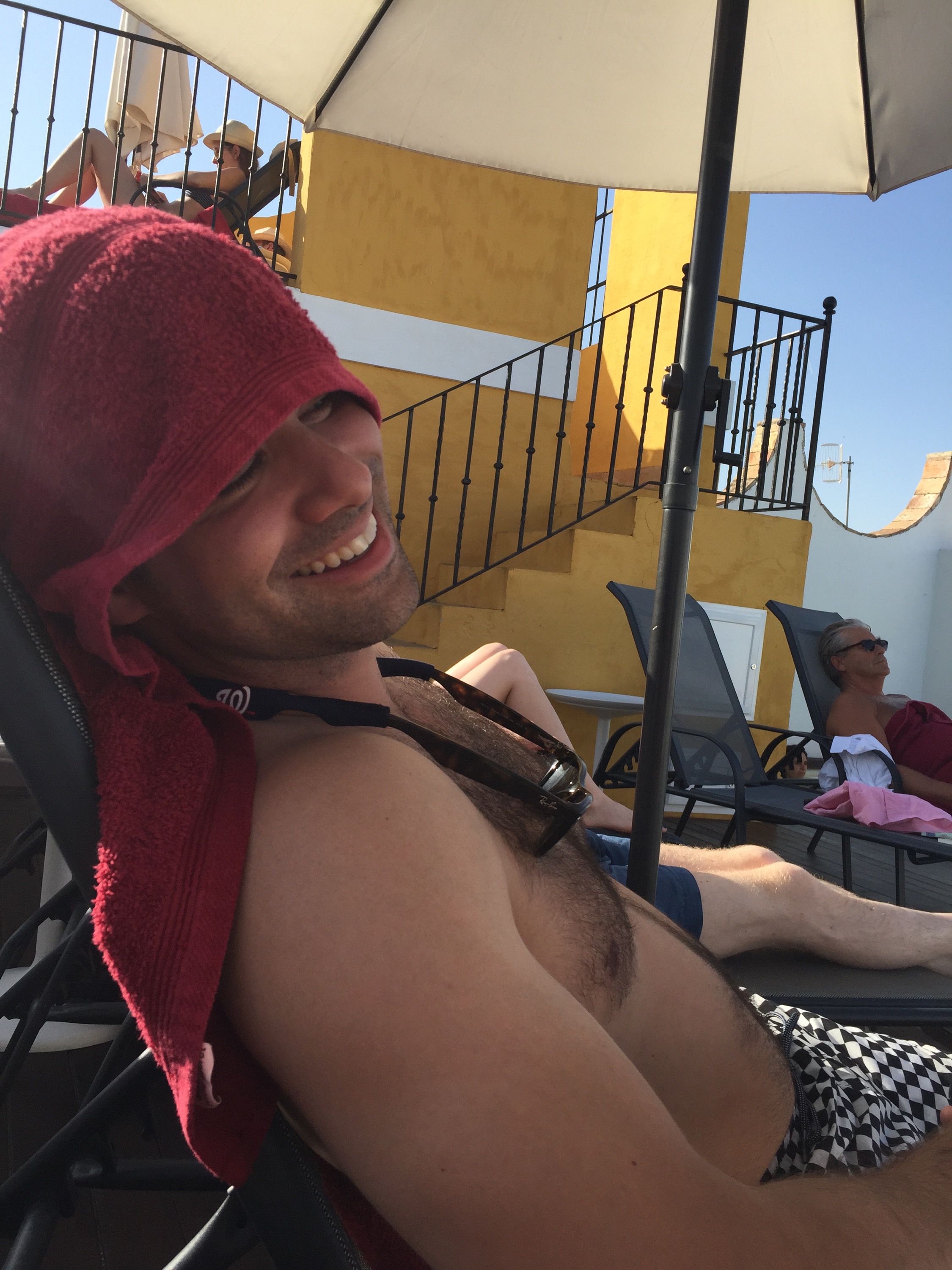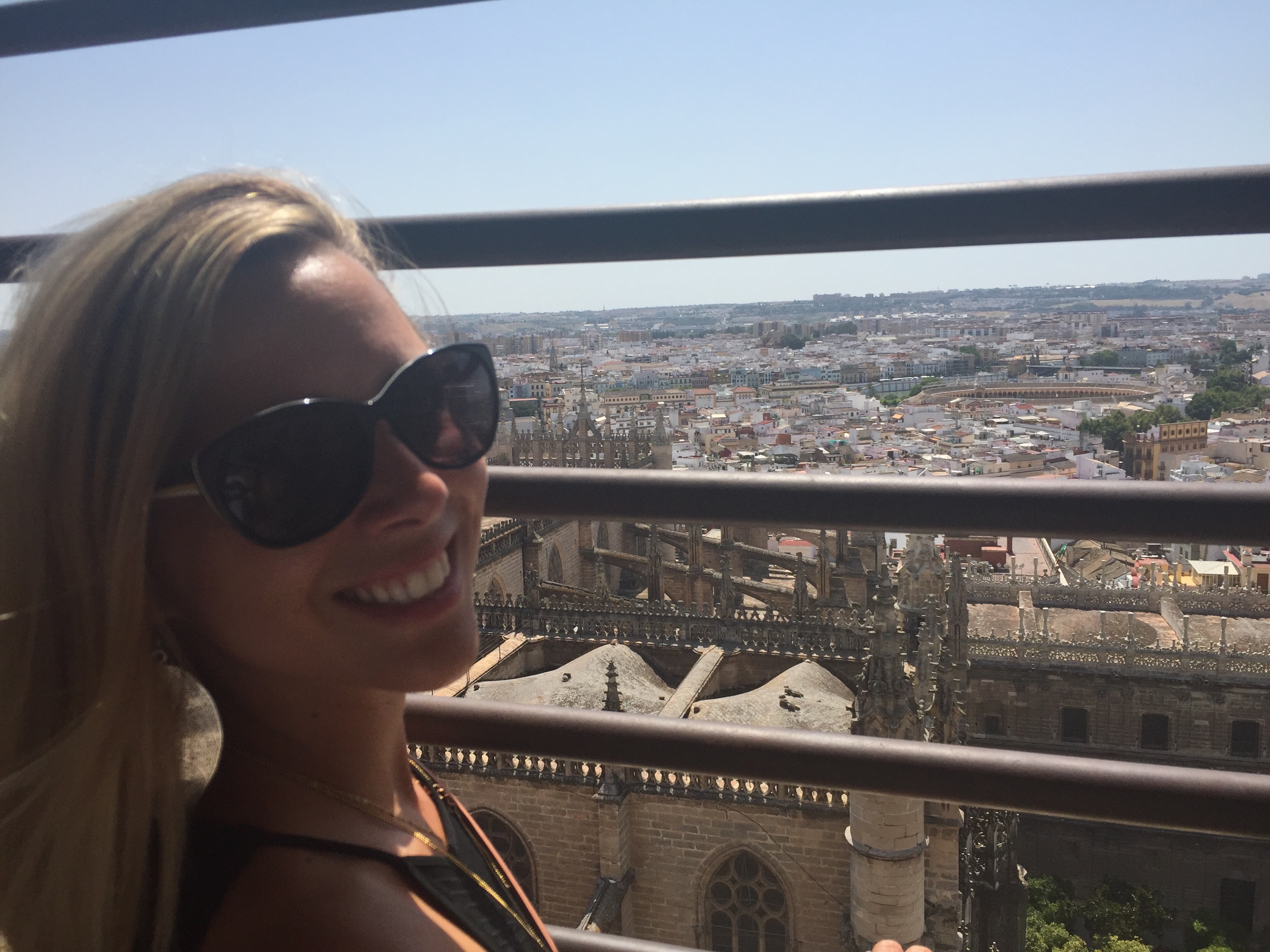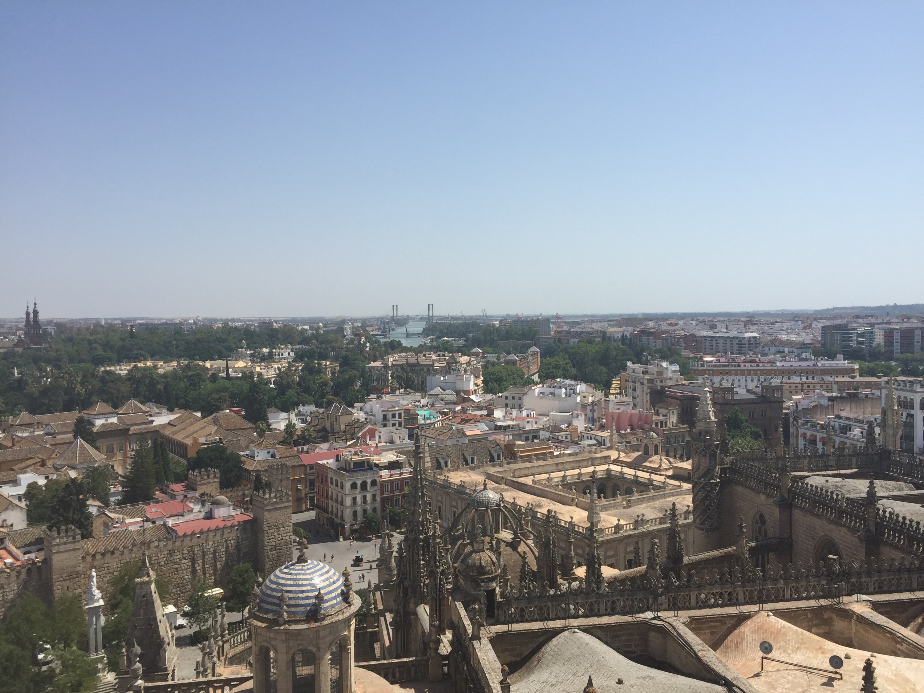 The climb to the top of La Giralda is not as strenuous a hike as other steps-happy towers because it is entirely ramps to the top. We can thank the original bell ringer for La Giralda’s somewhat easy accessibility, as he was handicapped, and therefore needed to take a horse to the top daily. Climbing to the top of La Giralda is another must-do in Seville, the views are unmatchable. Greg and I enjoyed locating all the sites we had seen, as well as our hotel’s rooftop pool from this bird’s eye view. In fact, once we spotted our hotel’s rooftop pool, we both immediately decided that it was time to retire the tourist hat for a couple of hours for a much needed submersion into water. Seville: though she be beautiful, she is scorching.
