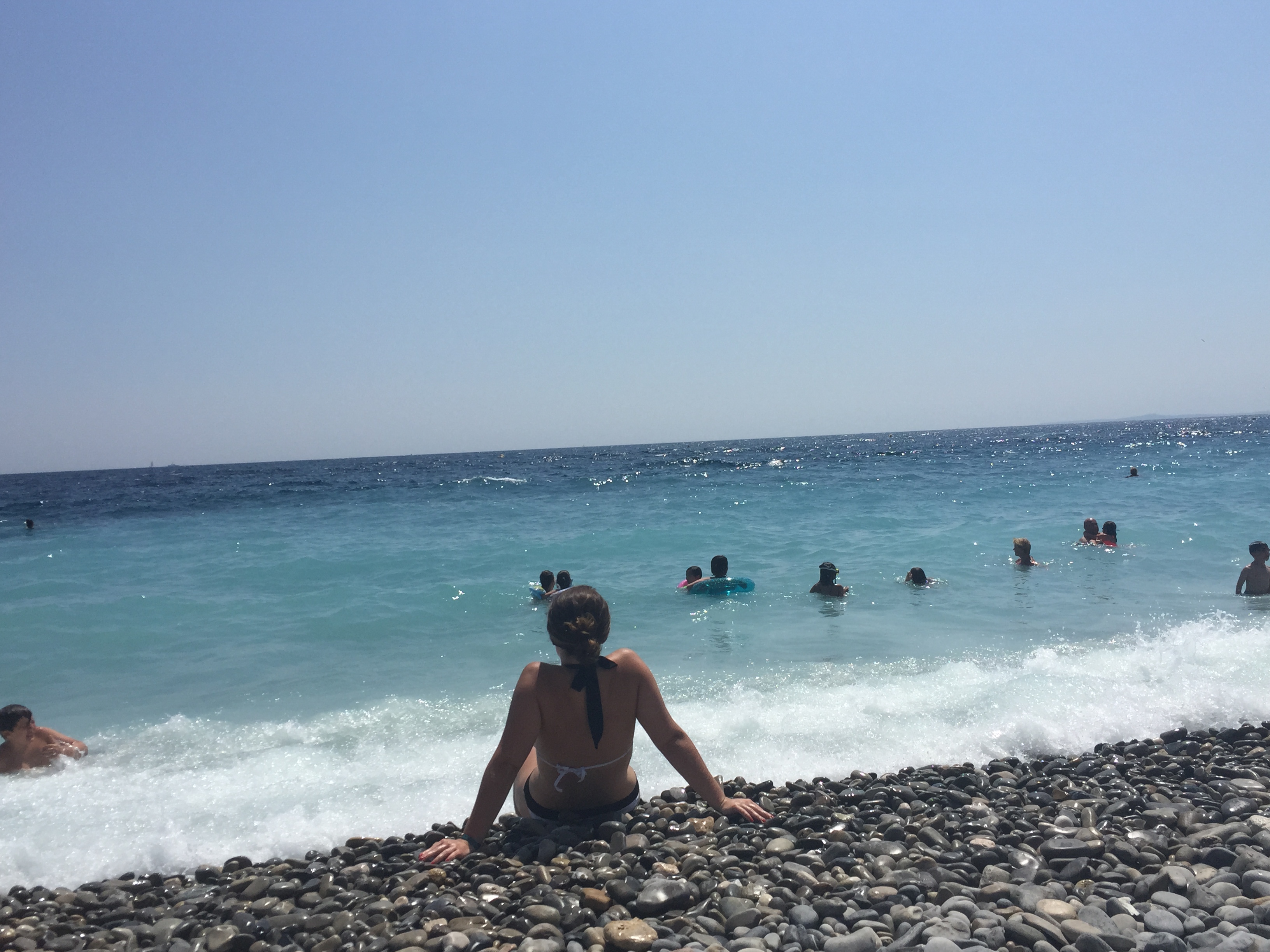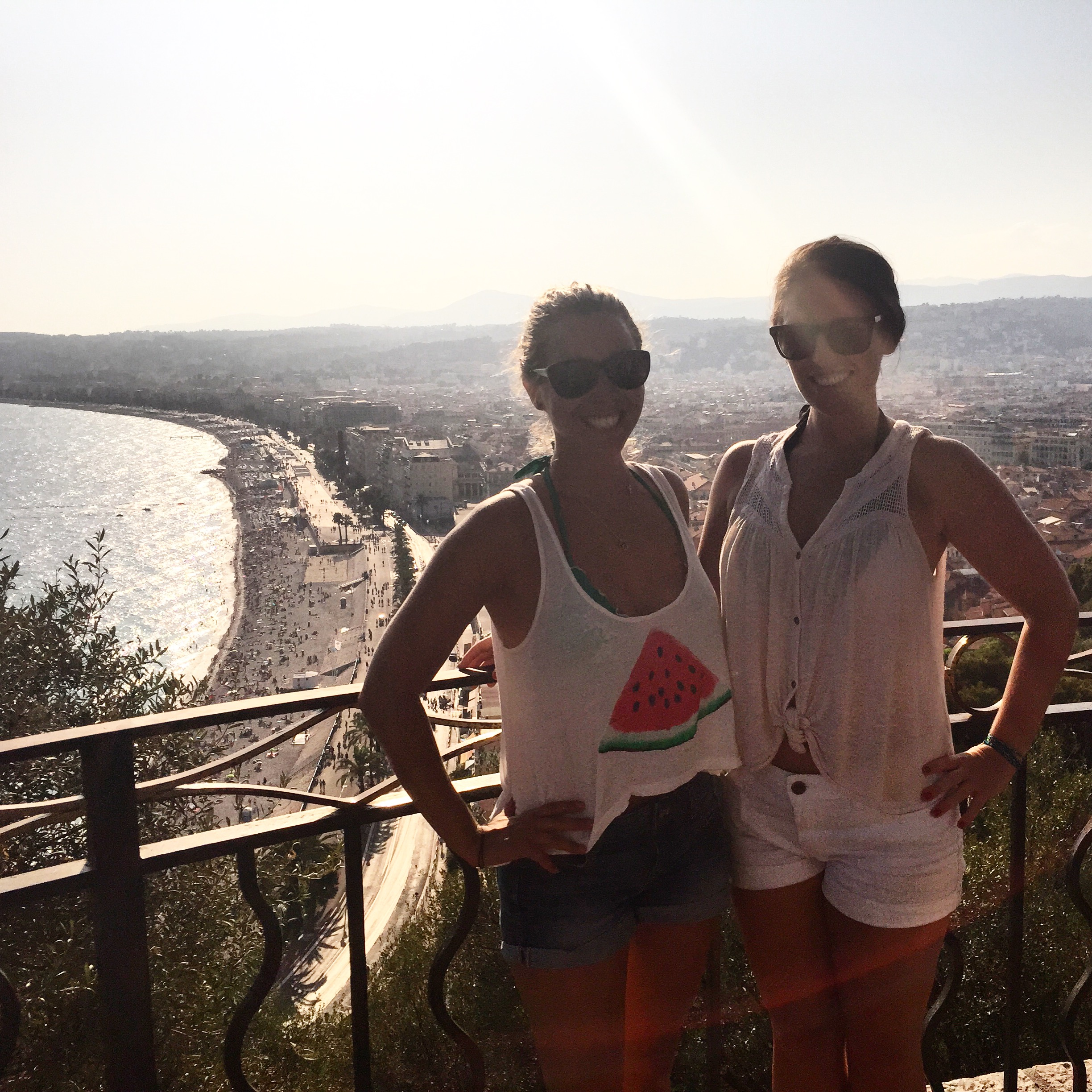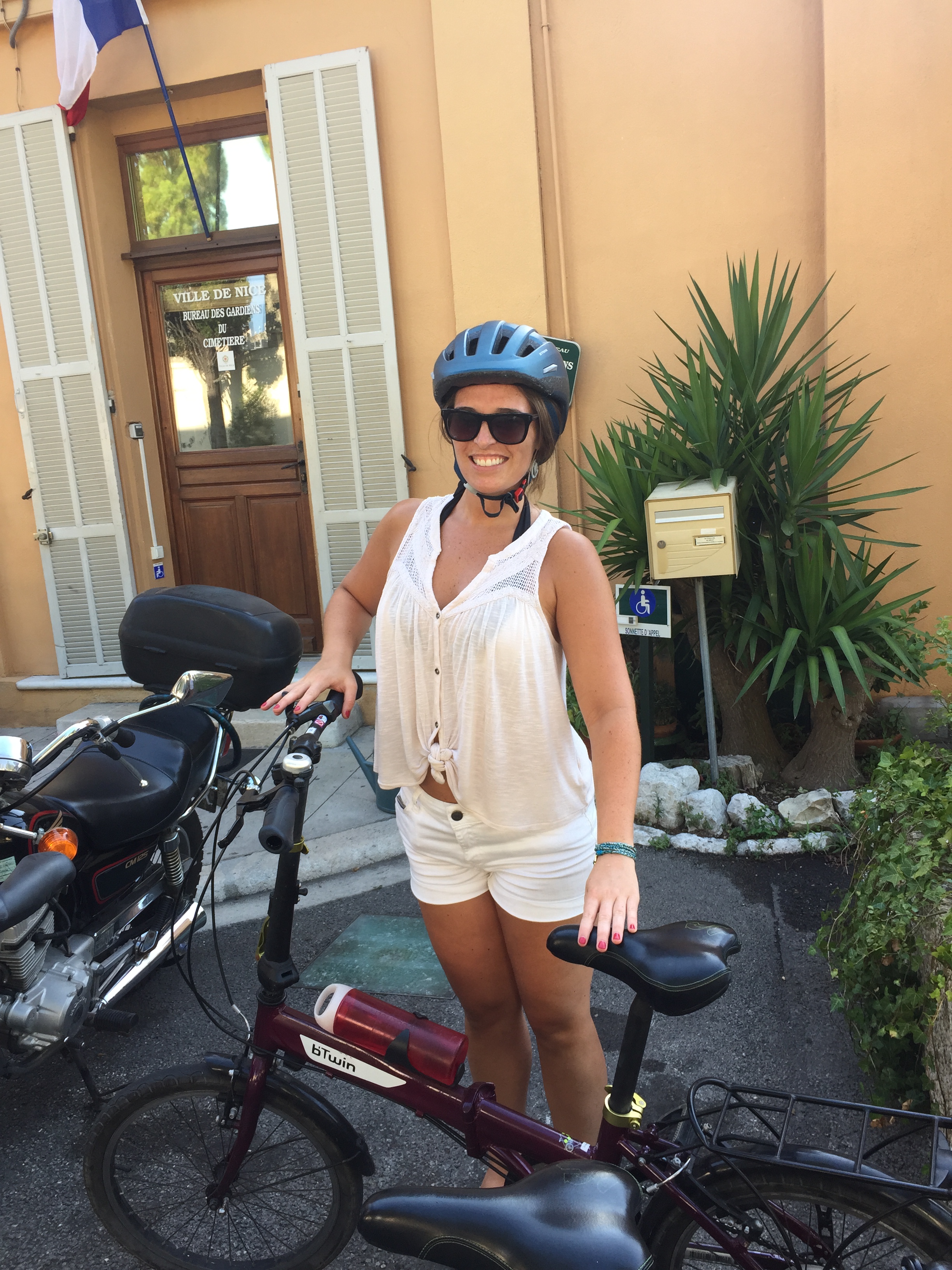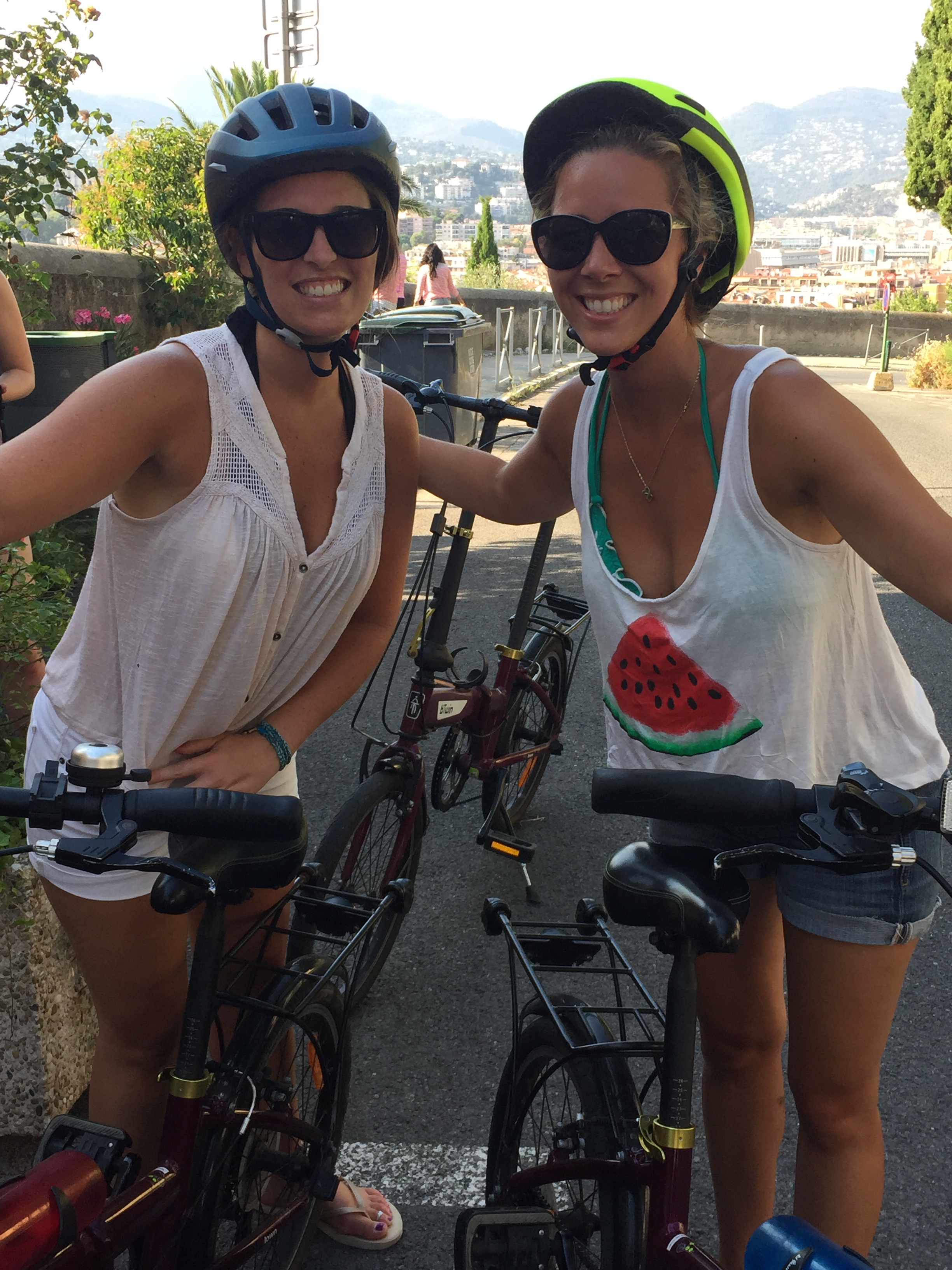 -Our bike tour with Nice Cycle Tours. After relaxing on chaise lounges (you pay for them through the restaurants that reside on the beach- around 15-16 euro for the whole day) on the beach for a few hours, we met up with our bike tour group for a 2-3 hour bike tour through all of Nice’s main sights. Our tour guide, Thelma, was a tiny, beautiful Irish mom of two. Thelma taught us volumes about the city of Nice, the place she feels so fortunate to have called home for the past 12 years. Our group of eight consisted of two Irish friends on a week-long holiday, an Australian couple, and two young Canadian girls doing a trip quite similar to my seven-week-long journey. Everyone was extremely friendly and handled the bikes pretty well. We cautiously navigated our way through the Old City, full of Italian-French charm and packed densely with a layered history. We then biked all along the Promenade des Anglais, stopping at various points to learn about the different hotels along the seafront and the Promenade’s evolution throughout time. After the Promenade we made our way to the Castle Hill, the most strenuous portion of the tour, where we had to bike up a rather steep and winding hill for what felt like a full 15 minutes. At the summit, we were handsomely rewarded with the best view of the entire city. Looking out with my best friend at the sparkling expanse of sea that met the flavorful city of old and new sealed the deal, I was in love with Nice. I highly recommend taking a bike tour of Nice, it’s a great way to get some exercise, learn about Nice’s unique history, meet new people, and explore the city in a special way.