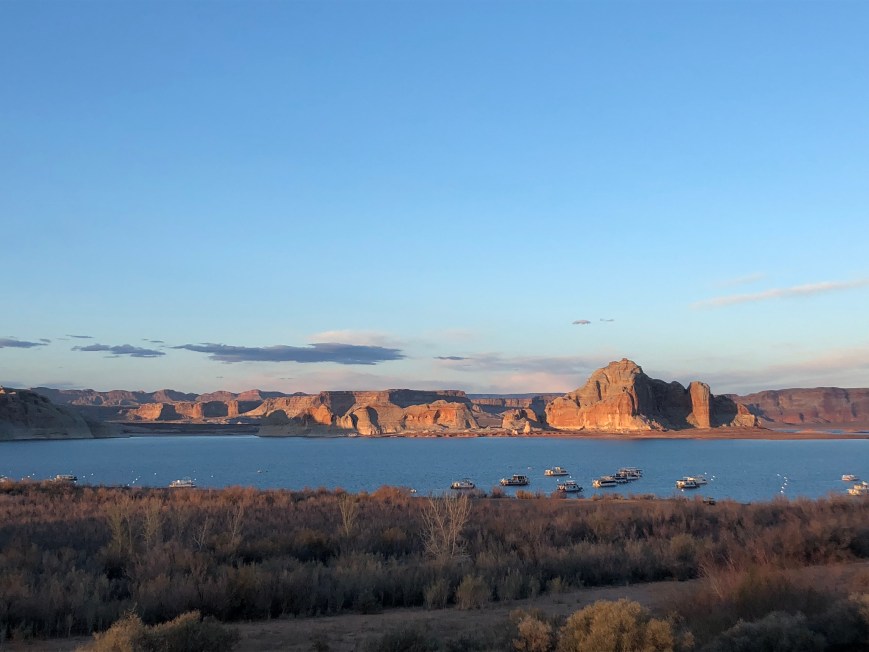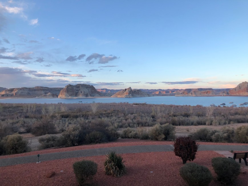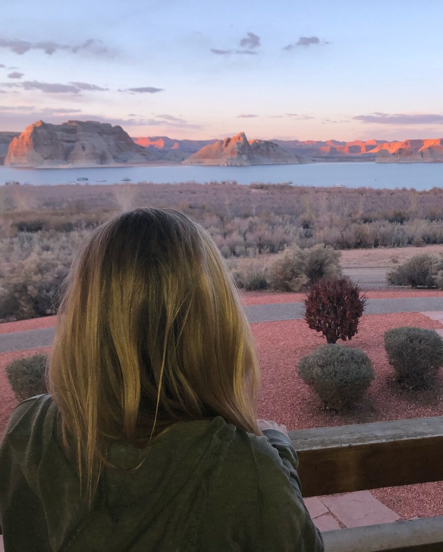 Ultimately, we made it to Lake Powell Resort just before sunset, where we splurged for the nicest room they had to offer with a lake view. This was well worth it! I would love to return to Lake Powell and maybe rent a houseboat with friends. At the time, I was obsessed with the TV show Westworld, and the panorama of Lake Powell was giving me major Westworld vibes. We live on a lake, so I am a little bit spoiled and hold high expectations for lake views, but Lake Powell surpassed those high standards. The beauty of the vermillion canyons bordering the water’s edge in the sun setting light was one of those sights our phone cameras couldn’t possibly do justice, The best way to capture that sight was by drinking it in with the naked eye and committing its every sensory detail to memory.