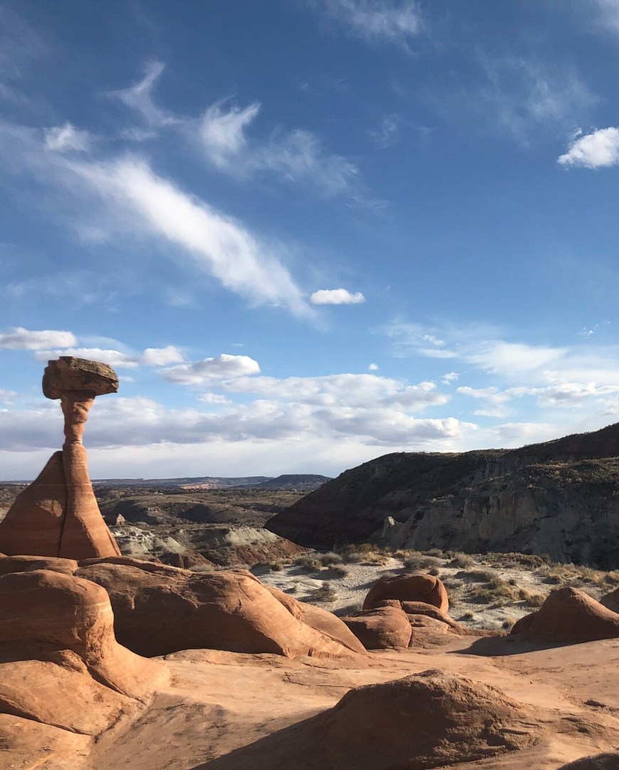 The drive from Vegas to just about anywhere is a compelling experience for any East Coaster. The landscape is so vastly different in all its desolate glory from our construction cluttered highways or leafy green roadways. I always enjoy a road trip that originates in Vegas, it makes me feel like a western pioneer. We rented a Mustang convertible, because we have learned that on a road-heavy itinerary, having a convertible or moon roof can be an experience in itself. We stopped along our 4 hour route at a natural site called the Toadstool Hoodoos in Paria Rimrocks within the town of Kanab. We tried getting lunch at an adorable cafe called Rocking V’s in Kanab, but sadly they weren’t serving lunch and were setting up for dinner. Toadstool Hoodoos was pretty cool. It’s a super easy walk, wouldn’t even call it a hike, to the rock formations that look like giant cairns. It was overrun with loud families playing hide and seek within the rock formations, so that detracted from its splendor. But, it’s worth a quick stop if you’re going that same 4 hour stretch from Vegas to Page.