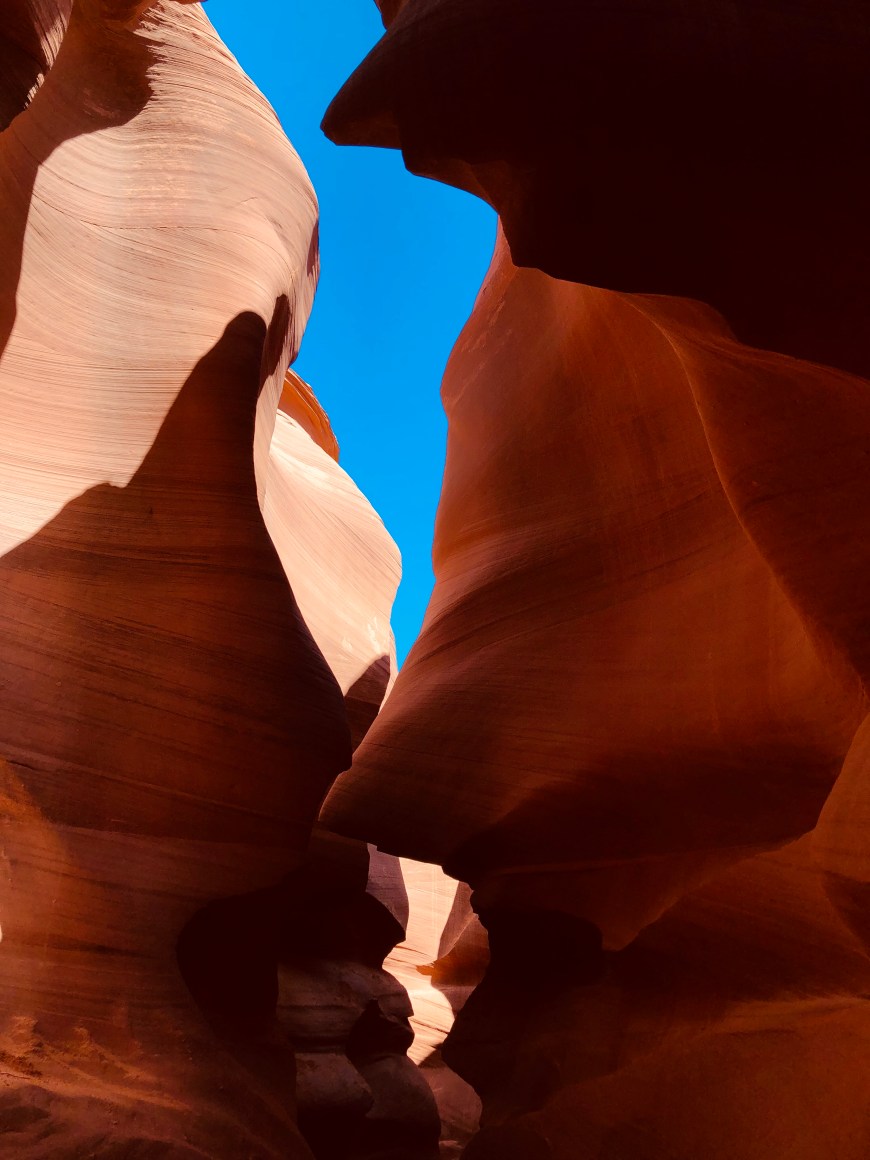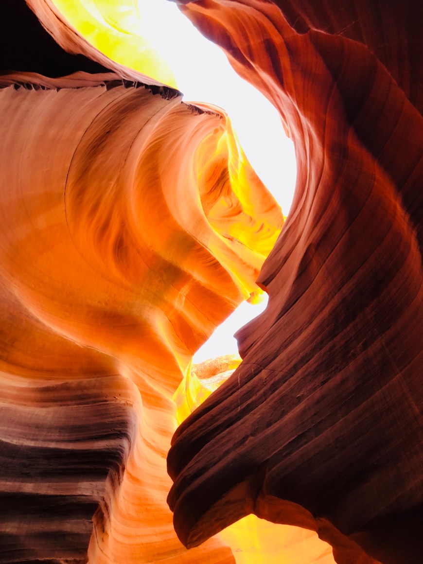 This was the main reason for this trip: Antelope Canyon. Thanks to Instagram, I had been mesmerized by this slot canyon’s beauty the minute I laid eyes on its petrified wave-like splendor. We read multiple reviews and blog posts about which tour to take, upper or lower, and lower won by a landslide. Lower Antelope Canyon is much longer than upper and you have more opportunities for catching glimpses of some of those famous light beams that filter through the fiery waves of rock in the canyon. Though insanely crowded, our guide was phenomenal and timed photo taking and walking through the canyon in such a way to achieve the feeling of being one of a few in the canyon, versus the reality of being one of hundreds. Even though I detest crowds, the tour through Antelope Canyon did not disappoint. Next to Gimmelwald, Switzerland; Petra, Jordan; the ice caves of Hali, Iceland, this was one of the coolest natural wonders I’ve ever been so fortunate to experience. If you’re into photography, get yourself to Antelope Canyon. It is a subject worthy of an entire roll of film. Bucket list item checked.