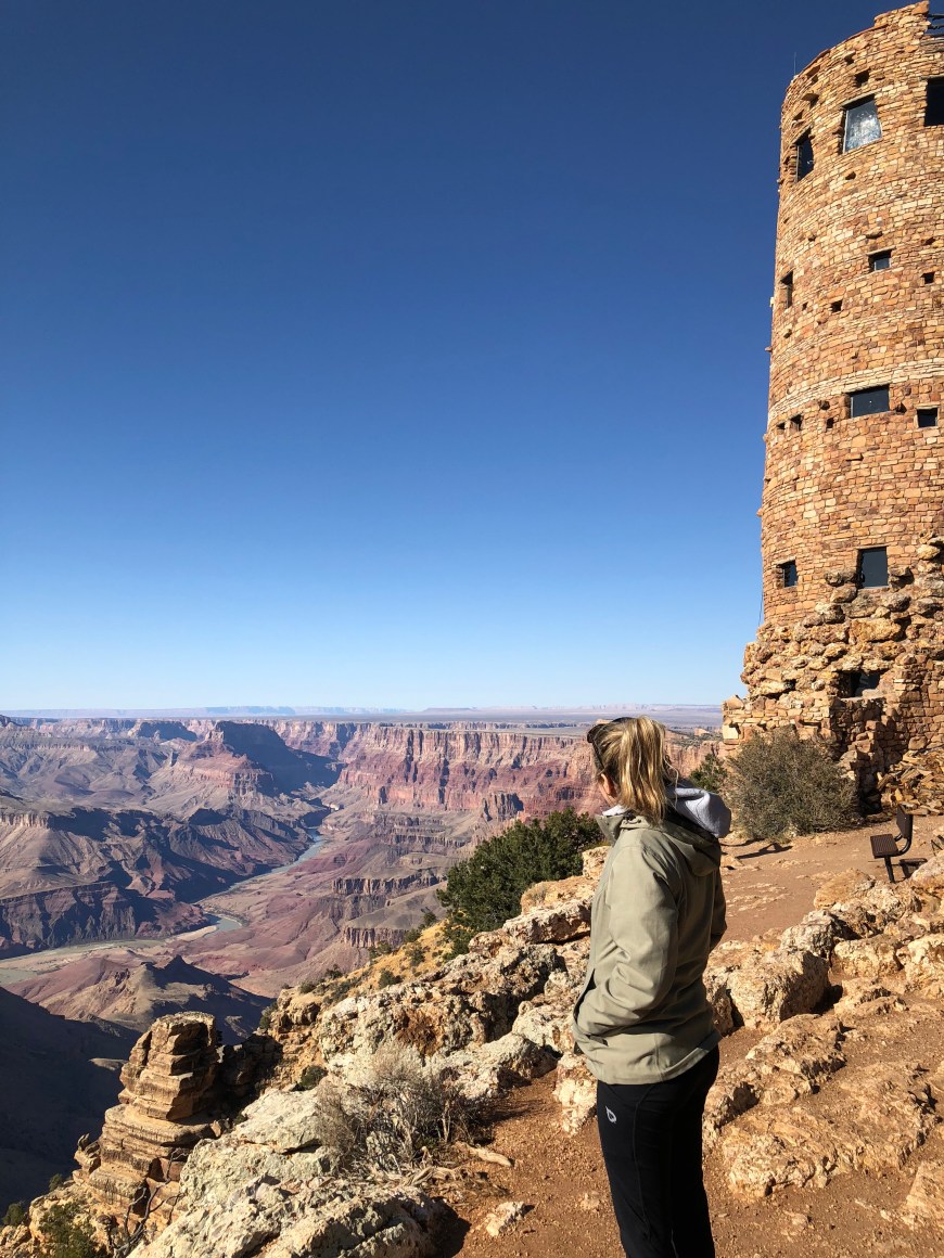 We also stopped at the Little Colorado Overlook on our way, and this was incredibly serene and quiet. The views are cool, not amazing, but still worth a quick stop. We stopped for lunch at the Cameron Trading Post, certainly a childhood pit stop I remembered fondly. It has a storefront laden with Native American chachkis and canyon souvenirs and also has a big restaurant with a lovely view out onto a rocky cliff face. We feasted on some southwestern fare, purchased a couple souvenirs for our nieces and then were back on our merry way to the South Rim entrance.