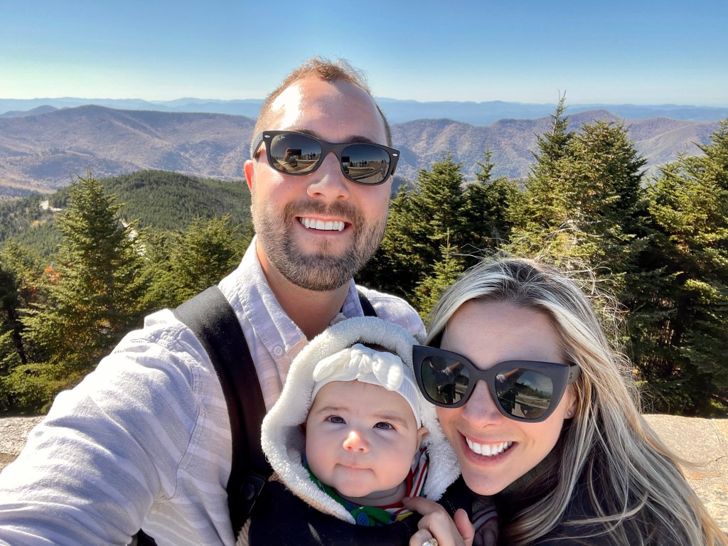 Alex and I knew we wanted to brave our first family of three vacation in October and set our sights on a national park. We originally wanted to go to Acadia, but after doing some research we discovered that most campsites in the park close in early October. Though we had successfully conquered three different family trips with our little peanut, we didn’t feel entirely jazzed about braving the airport with her, especially post pandemic with variants lurking. So all things considered, we sought a driving distance trip where we could revel in mother nature’s vibrant autumn display. If you’ve read my previous blog post on our trip to New Zealand, you’ll know that we are big fans of RV life. One might immediately bristle at the thought of hauling a baby around in an RV, but I can confidently say that it could very well be THE best way to travel with a baby. The amount of paraphernalia babies need is criminal. Okay, let me rephrase that, the amount of paraphernalia we equip our babies with to make us, the parents, feel slightly more prepared and in control of highly unpredictable, uncontrollable tiny humans, is criminal. Regardless, traveling by RV enabled us to pack all of the things and see and stay in multiple places. We had a house on wheels, it couldn’t have been more convenient! We rented an RV from a company called Ace Rentals in Herndon, VA and we highly recommend renting through them, we had a wonderful experience. We selected a 26 foot, luxury RV, equipped with a flat screen TV, fireplace, and interior that rivaled a Chip and Joanna Gaines HGTV masterpiece. My husband, Alex, is a fearless, aggressive driver. Whereas most might tremble at the thought of driving an enormous rig through mountainous terrain, Alex couldn’t wait. We sank our destination pin into The Great Smoky Mountains National Park and then researched blogs and consulted my National Parks book to identify stopping points along the way. Ultimately, we crafted a Griswald-esque family adventure via The Blue Ridge Parkway, and it ended up being one of our all-time favorite trips.