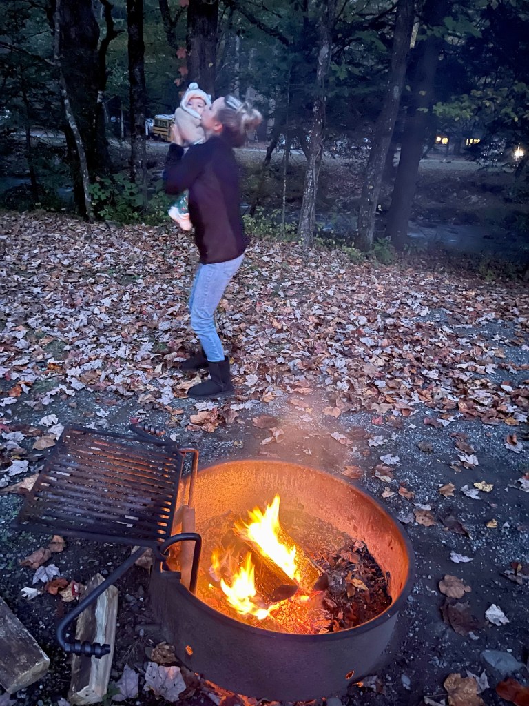 We, once again, got to camp after dark, but we felt spending more time in Blowing Rock was worth it. We turned on our RV fireplace and watched a scary movie after putting Claire down for a very late bedtime of close to 11 PM. Claire was on a mostly 3 nap schedule during this trip, which I have to say, was pretty ideal for traveling and staying out. The only trouble was when we drove at night, like on this night, we would have to wake Claire up when we arrived at camp and so we would need to give her a whole other wake window of about 2 hours. There was so much to do to set up camp though that these hours flew by and we got into a nice bedtime routine, similar to at home, just often at quite variable times each night. I am a big fan of Taking Cara Babies who always preaches “flexible routine over rigid schedule.” That was basically my mantra for this trip and it served us well.