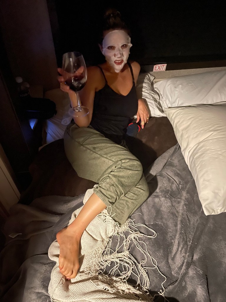 We got back to the RV in the dark with a screaming baby who rapidly fell asleep once we got moving, only to wake up fussy again when we got to the RV park, which was just about 10 minutes outside the city. Wilson’s Riverfront RV Park wasn’t the nicest, but it was super convenient and did sit right next to the Oconaluftee River that has a lovely running and walking path that winds along beside it. Once we got Claire resettled and down for bed, I poured myself a glass of wine and put on a sheet mask. It was a great, action-packed day, and mama was tired.