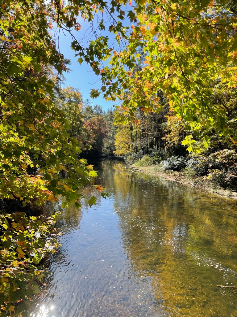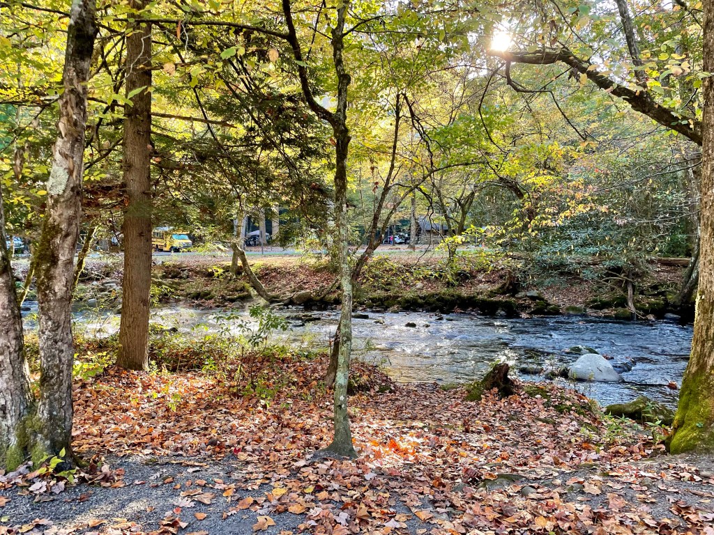 Come nap time we made our way back to the RV, had some lunch, and then hit the road for our main destination: The Great Smoky Mountains National Park. The drive from Asheville to GSMNP is one hour and 5 minutes. As we neared the park we passed dozens of kitschy, campy motor lodges, inns, RV parks, and t-shirt shops. The drive is incredibly scenic prior to the touristic line up outside the park. I also was tickled by the road signage along our route. A personal favorite I spotted was “Tater Patch Way.” Our plan was to enter via the Cataloochee entrance and to then tour the preserved historic town of Cherokee before establishing camp at Smokemont Campground. Well, we didn’t properly anticipate how long it would take us to drive the swirly, twirly gravelly roads in the park. We made it to the entrance of a highly scenic route called Cataloochee Road, but luckily for us, a kindly NC native in a truck pleaded with us to reconsider trying the road in our big rig. He saved us, I think we all would have been nauseous and exhausted from terror. We hit a massive back-up entry into the park, that we quickly learned was due to an elk sighting. That was pretty neat to see wildlife the moment we entered the park! Late afternoon was approaching by this time so we decided to enjoy our campsite in daylight and relax at camp. Smokemont was worthy of our time. Our site backed up onto the Oconaluftee River, and that river embanked by moss and the rainbow of fallen autumn leaves was as locals might say, “purty as a picture.” We made a campfire and enjoyed chili, cornbread, and ciders, serenaded by the river’s relaxing sound therapy.