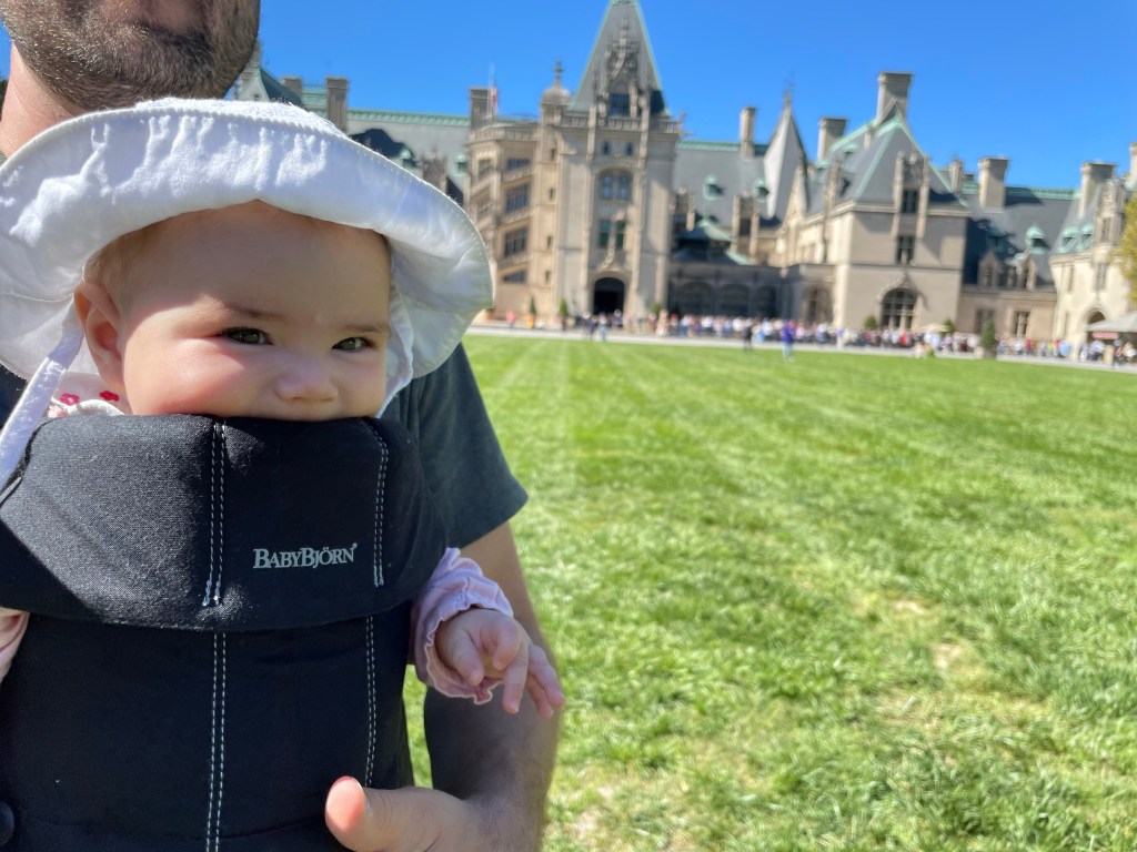 I had heard wonderful things about the Biltmore gardens, which seemed like a child-friendly way to spend an afternoon. Though tickets were pretty ridiculously overpriced, we decided the Biltmore experience was a must while in Asheville. The grounds are exceptionally maintained and seemingly unending. We took the guided trolley ride to the estate and cruised the exterior perimeter before hauling the stroller and Claire down several non-handicap/stroller friendly stairway entrances to the gardens. The estate is certainly something to marvel at. It reminded me of Disney World a bit, especially how it was crawling with tourists, which felt a little odd during somewhat-still-pandemic-times. The line to tour the interior looked like it would take 3 hours, so we thanked ourselves for only committing to the gardens. The gardens are so vast that even on a super crowded, beautiful day, we managed to amble peacefully and have a somewhat intimate experience with the gardens. Our visit was in October so the mums were in full, vibrant bloom. Claire seemed to enjoy the colors and sweet aroma. It was a lovely way to get some steps in!