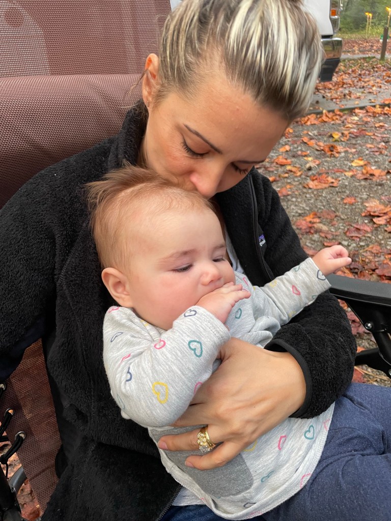 We didn’t get to enjoy Peaks of Otter because we arrived in the dark, but from what we saw in the morning, it was a lovely, friendly, and very popular campground! I had cooked a couple of meals ahead of time, so we bumped out the RV and enjoyed one of the pre-prepared meals and some wine. I was nervous about Claire sleeping in such close proximity to us as we moved her out of our bedroom and into her own room when she was two months old, on our trip she was just shy of five months old. However, with our well provisioned setup and the sightseeing tuckering her out, she did amazingly well! Prior to departing on our trip, I made it a goal to have her transitioned out of the Snoo and into her crib, unswaddled. I went cold turkey with this transition and it actually was very successful. We sleep trained Claire as well, which was something I said I’d never do, but I’ve done just about everything I said I’d never do as a mom already anyways. I’ve come to learn that a happy mom is the best kind of mom, and sometimes that means changing my stance on preconceived motherhood notions. Claire was still having some early morning wakings prior to our trip, but she pleasantly surprised us and did her first ever official sleeps through the night on our trip! This was positively reinforcing to say the least and afforded Alex and me some time to unwind and relax after she went to bed. The bump out helped create a little bit of a sound barrier so we could watch some movies. We also purchased the Snooze Shade, which is a breathable mesh blackout covering for the Pack and Play that worked like a charm! We also brought our portable sound machine and hooked up the monitor to the interior of the Pack and Play using a selfie stick holder.